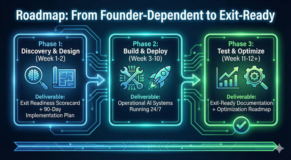 Outcome: a measurable reduction in owner hours and a documented path to a more buyable, owner-optional business.